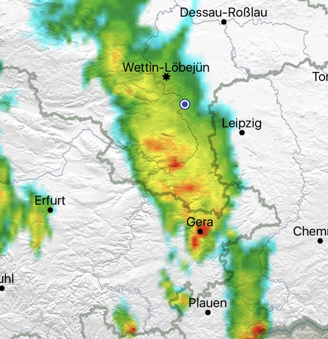 Das Gewitter ist von mittlerer Stärke. Bitte beachtet die Warnungen.