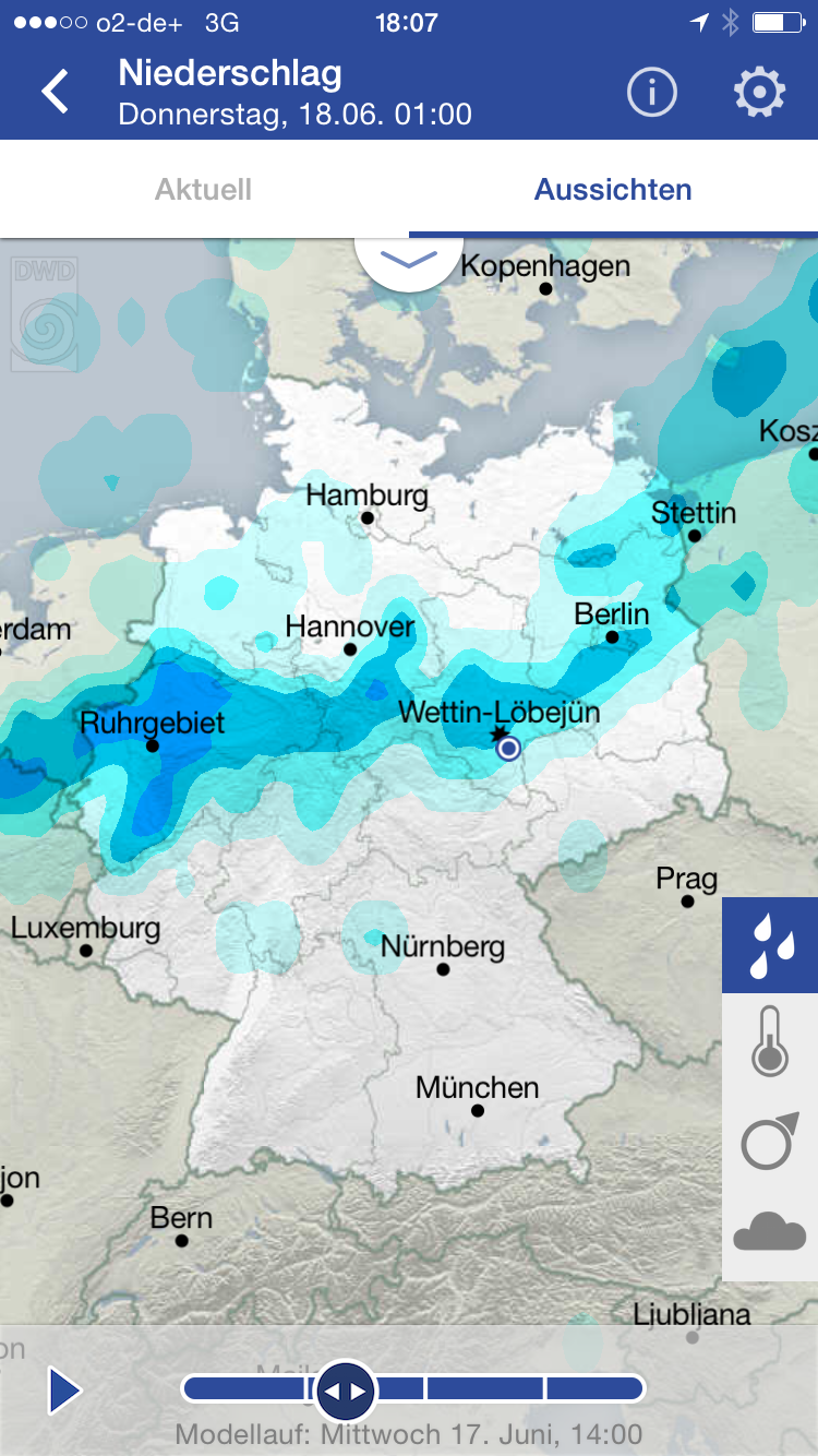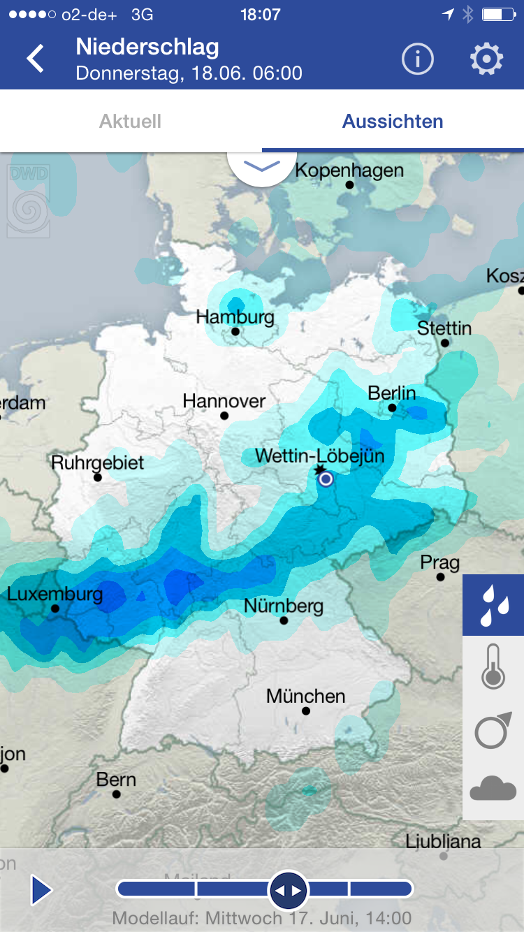 Heute Nacht zieht ein Regengebiet über uns (siehe Bilder, Copyright www.dwd.de)