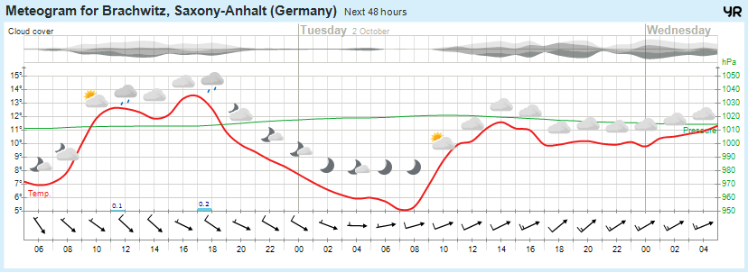 Wettervorhersage Brachwitz, Wettin-Löbejün, Saalekreis, Halle 01.10.2018