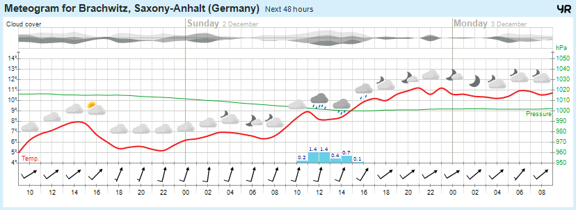 Wettervorhersage Brachwitz, Wettin-Löbejün, Saalekreis, Halle 01.12.2018