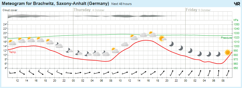 Wettervorhersage Brachwitz, Wettin-Löbejün, Saalekreis, Halle 03.10.2018