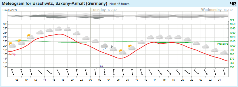 Wettervorhersage Brachwitz, Wettin-Löbejün, Saalekreis, Halle 11.06.2018