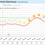 Am Samstag ist es bei wechselnder, in Altmark und Börde auch starker Bewölkung weitgehend niederschlagsfrei. Der obere Harz verbleibt hingegen ganztags in Wolken. Bei mäßigem Südwestwind steigen die Temperaturen auf sehr milde 12 bis 15, am Nordrand des Harzes bis 16 Grad. Selbst im Harz werden 7 bis 12 Grad erreicht. Vom Harz bis zum Burgenland kommt es zu Windböen bis 60 km/h (Bft 7). Auf dem Brocken treten weiterhin orkanartige Böen, teils auch Orkanböen (Bft 11/12, 105 bis 130 km/h) auf. In der Nacht zum Sonntag wird kein Regen erwartet. In der zweiten Nachthälfte verdichten sich allerdings die Wolken. Die Temperatur geht nur auf 10 bis 7, im Harz bis 4 Grad zurück. Der Wind weht mäßig aus Südwest. Auf dem Brocken kommt es zu orkanartigen Böen bis 110 km/h (Bft 11).