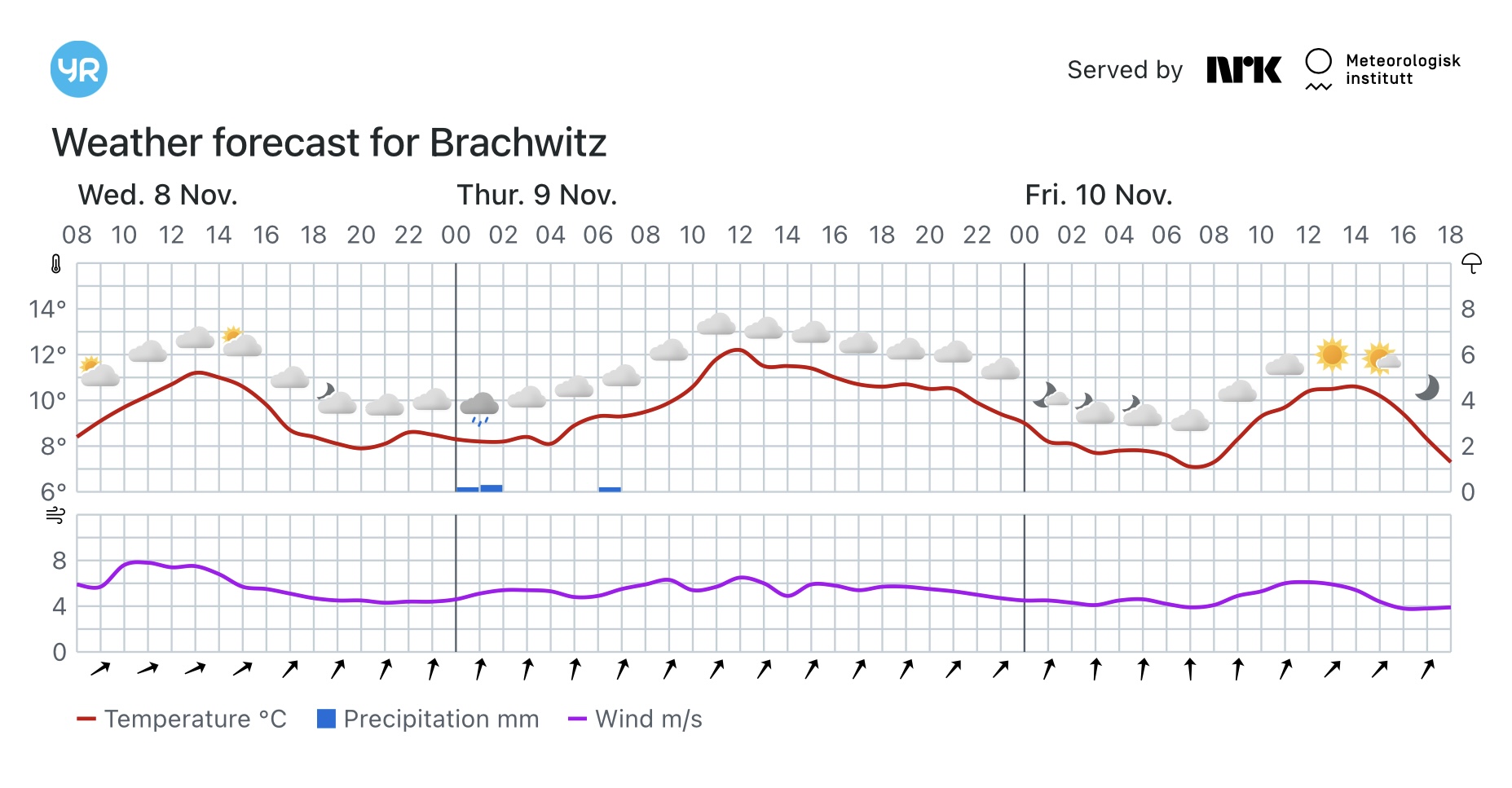 Wettervorhersage Brachwitz, Wettin-Löbejün, Saalekreis, Halle 08.11.2023
