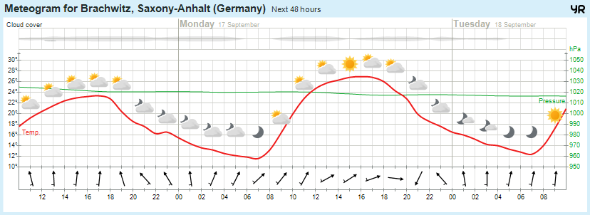 Wettervorhersage Brachwitz, Wettin-Löbejün, Saalekreis, Halle 16.09.2018