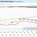 Detaillierter Wetterablauf: Heute Vormittag ist die Wolkendecke zunächst geschlossen und es fällt verbreitet Niederschlag, vom Harzer Bergland bis zur Altmark muss teils bis in tiefe Lagen mit Schneeregen oder Schnee gerechnet werden. Bis in die Mittagsstunden steigt die Schneefallgrenze jedoch bis auf 600 m an. Nachmittags lässt der Niederschlag dann im Süden nach und die Wolken lockern vorübergehend etwas auf. Nur in der Altmark muss bis zum Abend noch mit Regen gerechnet werden. Bei schwachem Wind aus östlichen, später südlichen Richtungen werden Tageshöchsttemperaturen zwischen 5 Grad in der nördlichen Altmark und 10 Grad im Burgenland erreicht. Im Harz werden 2 bis 5 Grad erwartet. In der Nacht zum Montag ist es bedeckt und vor allem in der Nordhälfte fällt leichter Regen, entlang der Grenze zu Niedersachsen auch etwas Schnee. Die Schneefallgrenze liegt im Harz bei etwa 500 m. Die Temperatur sinkt auf 2 bis 0, im Harz bis -3 Grad und es besteht Glättegefahr. Der Wind weht schwach aus nördlichen Richtungen.