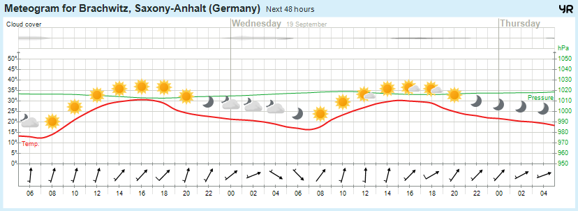 Wettervorhersage Brachwitz, Wettin-Löbejün, Saalekreis, Halle 18.09.2018