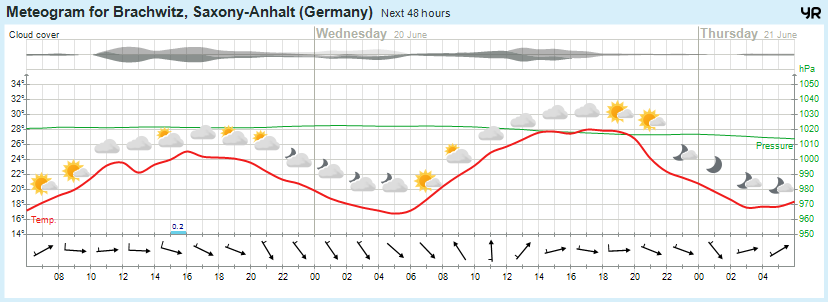 Wettervorhersage Brachwitz, Wettin-Löbejün, Saalekreis, Halle 19.06.2018