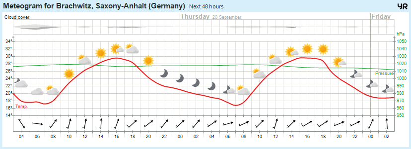 Wettervorhersage Brachwitz, Wettin-Löbejün, Saalekreis, Halle 19.09.2018