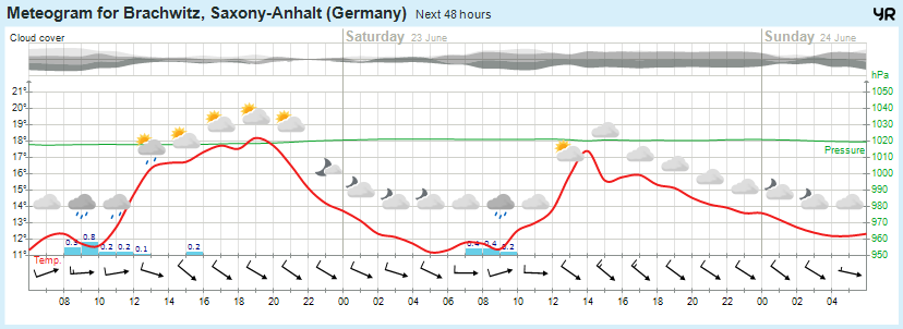 Wettervorhersage Brachwitz, Wettin-Löbejün, Saalekreis, Halle 22.06.2018