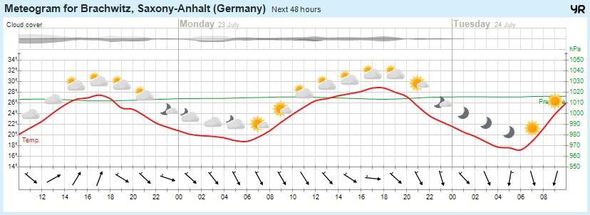 Wettervorhersage Brachwitz, Wettin-Löbejün, Saalekreis, Halle 22.07.2018