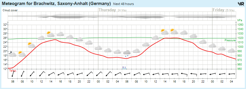 Wettervorhersage Brachwitz, Wettin-Löbejün, Saalekreis, Halle 23.05.2018