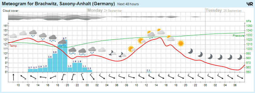 Wettervorhersage Brachwitz, Wettin-Löbejün, Saalekreis, Halle 23.09.2018