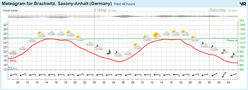 Wettervorhersage Brachwitz, Wettin-Löbejün, Saalekreis, Halle 24.05.2018
