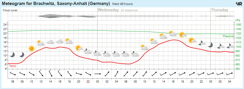 Wettervorhersage Brachwitz, Wettin-Löbejün, Saalekreis, Halle 25.09.2018