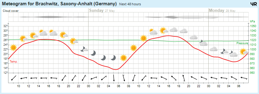 Wettervorhersage Brachwitz, Wettin-Löbejün, Saalekreis, Halle 26.05.2018