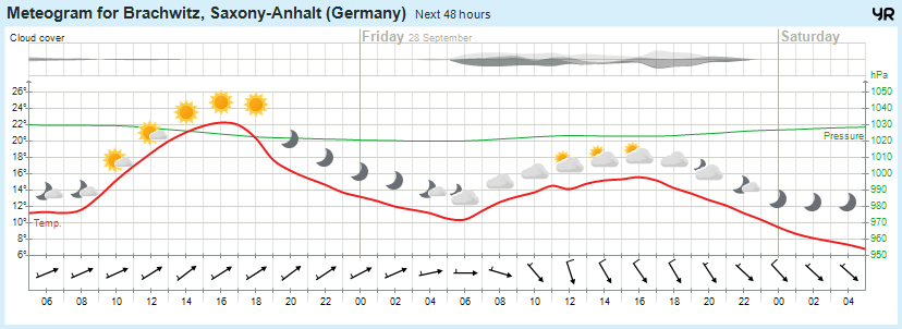 Wettervorhersage Brachwitz, Wettin-Löbejün, Saalekreis, Halle 27.09.2018