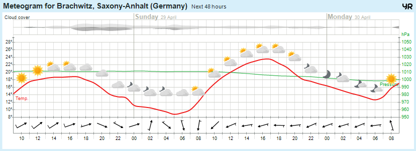 Wettervorhersage Brachwitz, Wettin-Löbejün, Saalekreis, Halle 28.04.2018