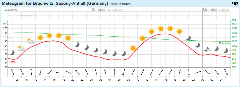 Wettervorhersage Brachwitz, Wettin-Löbejün, Saalekreis, Halle 29.09.2018