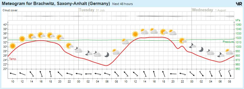 Wettervorhersage Brachwitz, Wettin-Löbejün, Saalekreis, Halle 30.07.2018