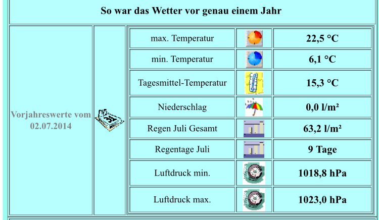 Detaillierter Wetterablauf: Heute Vormittag und im weiteren Tagesverlauf ist es sonnig, sodass das trockene Wetter anhält. Bei schwachem Ost- bis Südostwind steigt die Temperatur auf hochsommerliche 30 bis 33, im Harz auf 26 bis 30 Grad. Es muss mit einer starken Wärmebelastung gerechnet werden. In der Nacht zum Freitag ist es überwiegend klar. Es werden Tiefstwerte zwischen 17 und 15, im Harz bis 13 Grad erwartet. Der Wind weht schwach aus Südost. Es bleibt niederschlagsfrei.